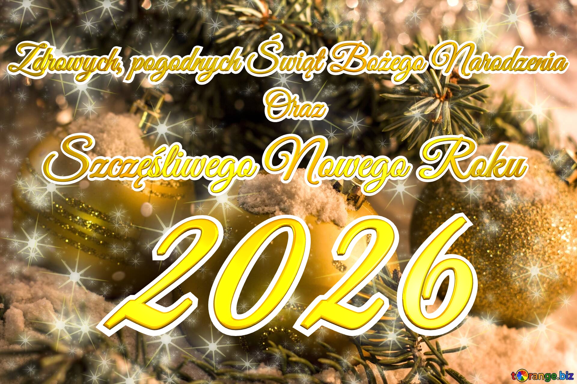Volumetric 3D inscription 2026 Zdrowych, Pogodnych Świąt Bożego Narodzenia Oraz Szczęśliwego Nowego Roku Oraz oVolumetric 3D inscription Free Christmas Card Holiday Clusters Bright Twinkling Stars Pattern