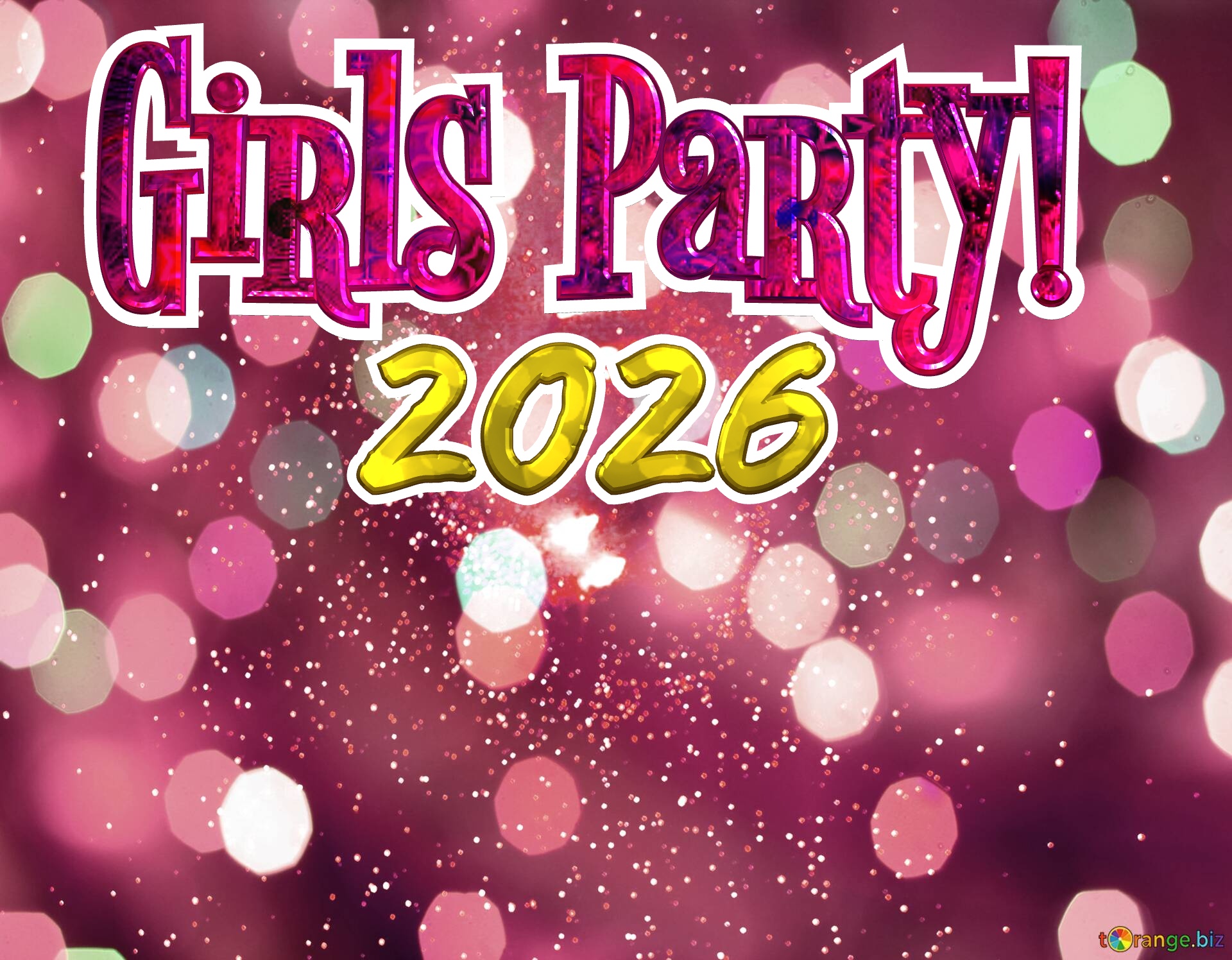 Volumetric 3D inscription Girls Party! 2026 oVolumetric 3D inscription Pink Fireworks Fantasy: New Year's Background Spectacle