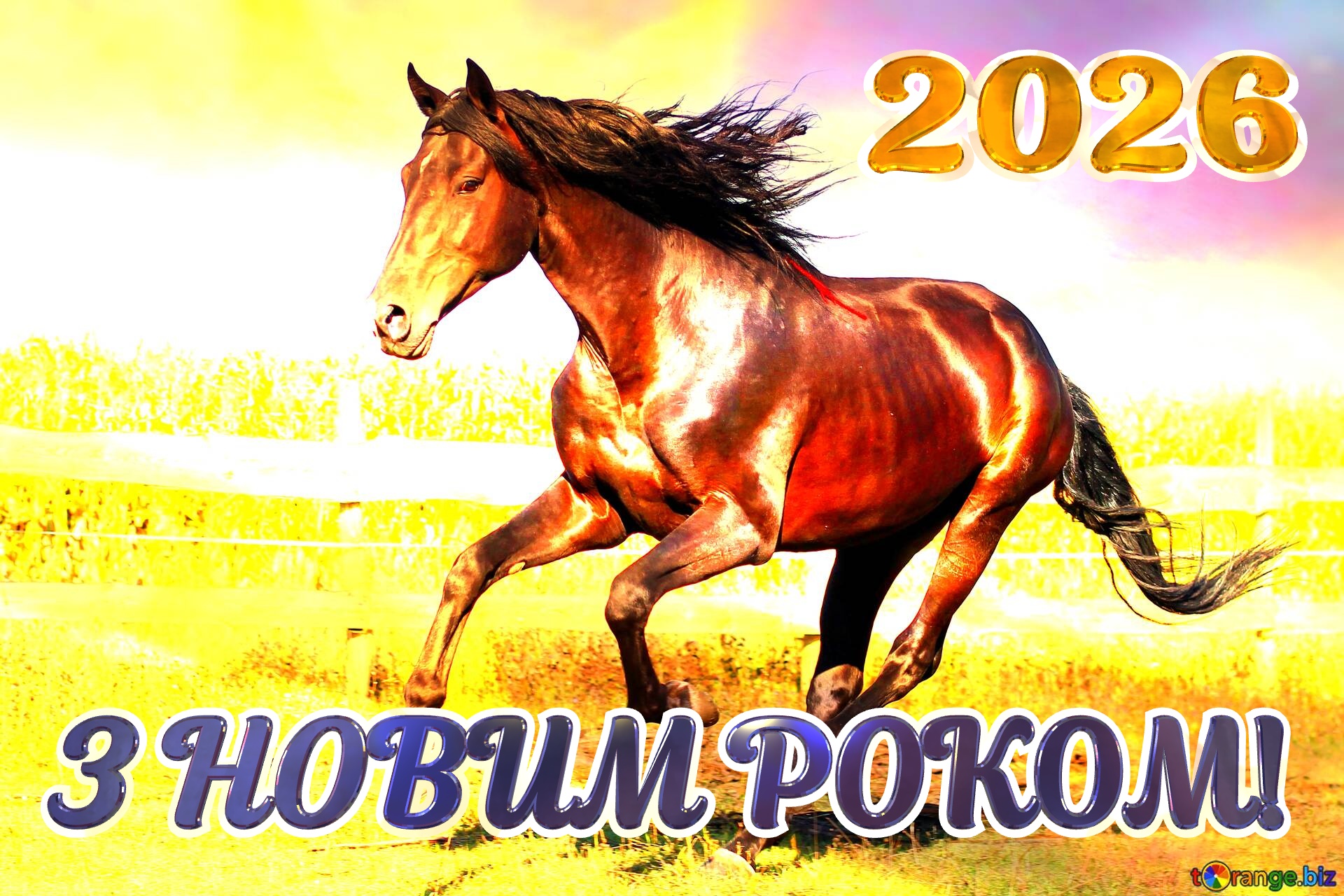 Volumetric 3D inscription З НОВИМ РОКОМ! 2026 oVolumetric 3D inscription Horse Art Background