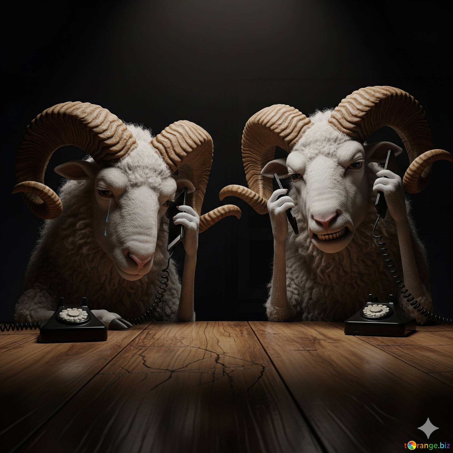 電話に乗った二匹の羊:話す雄羊の気まぐれな芸術 #57059