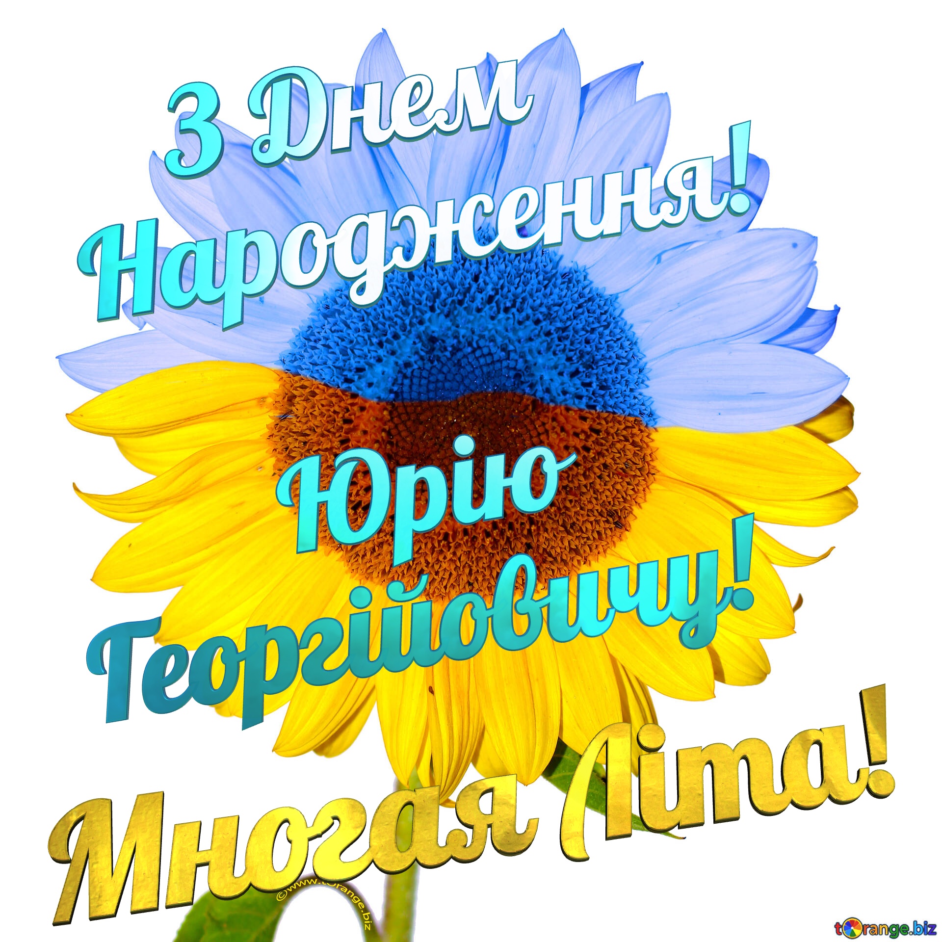 Об'ємний 3D-напис Многая Літа! З Днем Народження! Юрію Георгійовичу oна тлі зображення Ukrainian Sunflower